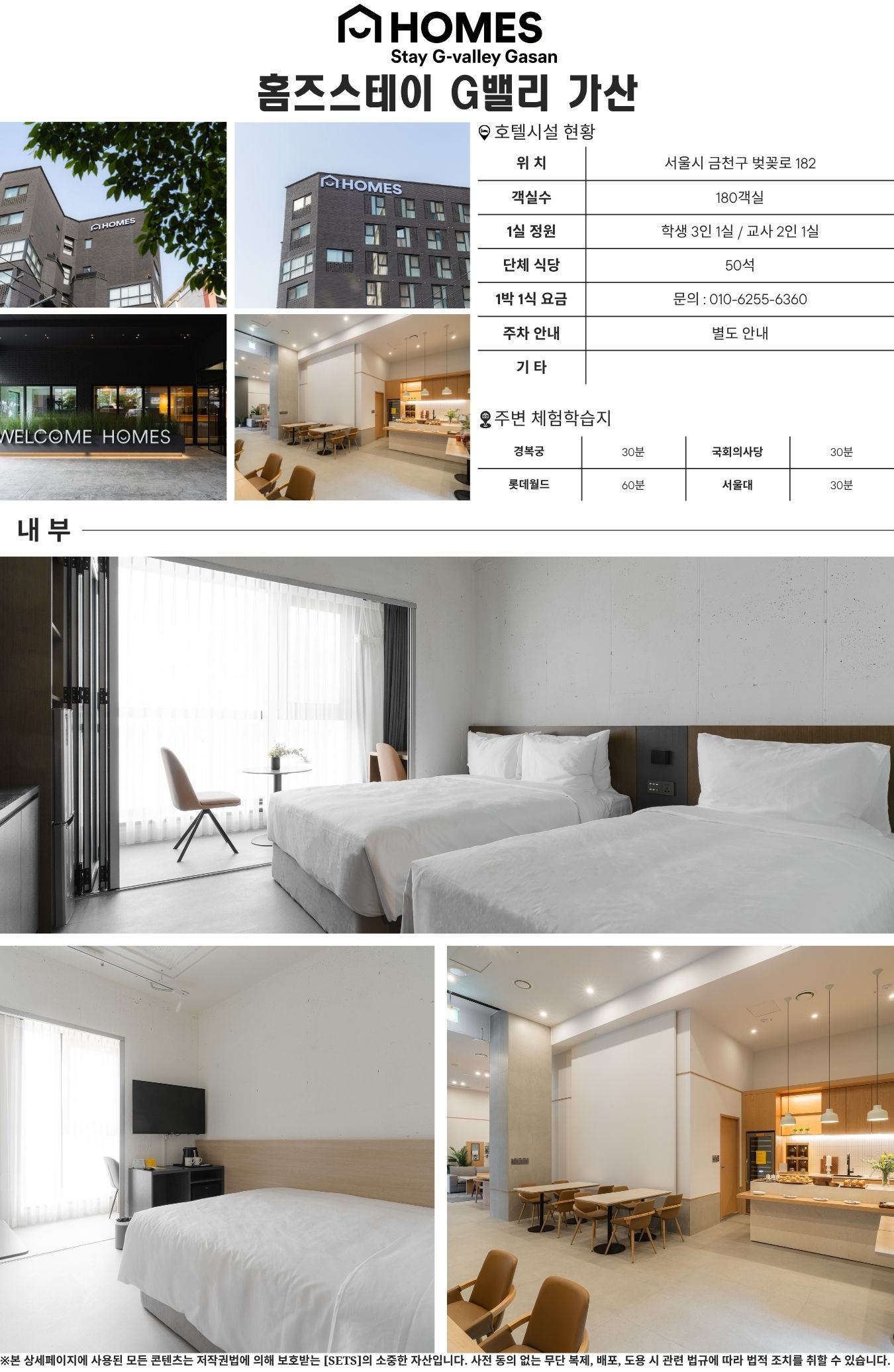 홈즈스테이 G밸리 가산점(Holmes Stay G-Valley Gasan)은 서울 금천구 가산디지털단지 중심에 위치한 모던 감성의 도심형 호텔로, 학생단체와 단체 여행객에게 최적화된 숙박 공간입니다.