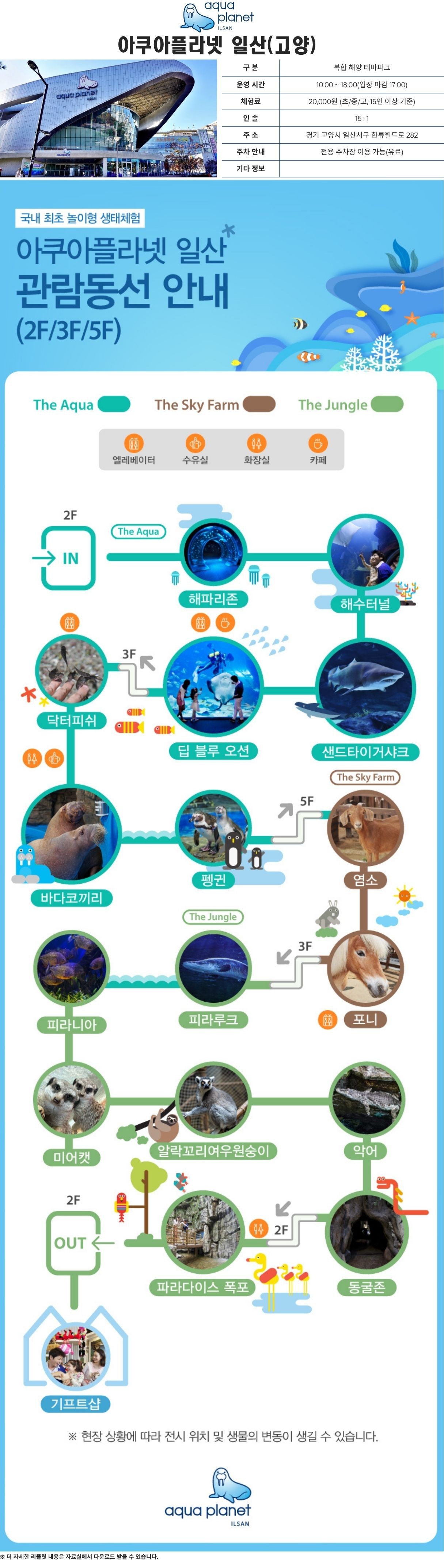 아쿠아플라넷 일산(고양)은 수도권 최대 규모의 복합 해양 테마파크로, 학생 단체와 현장학습객에게 바다와 육지의 신비를 동시에 선사합니다. 일산 호수공원 인근에 위치하여 서울 및 경기, 인천 지역에서의 접근성이 뛰어나며, 실내 시설로 날씨에 관계없이 안정적인 체험학습 일정이 가능합니다. 신비로운 해양 생물들이 가득한 '더 아쿠아'와 정글 속 동물들을 만나는 '더 정글'은 학생들에게 생태계의 소중함을 일깨우는 특별한 교육의 장이 됩니다. 쾌적한 관람 환경과 체계적인 단체 동선, 안전한 시설은 학생들에게는 잊을 수 없는 경험을, 인솔 교사에게는 편안한 인솔 환경을 제공합니다. 아쿠아플라넷 일산, 도심 속에서 만나는 가장 생생하고 특별한 생태 체험 학습의 기준입니다.