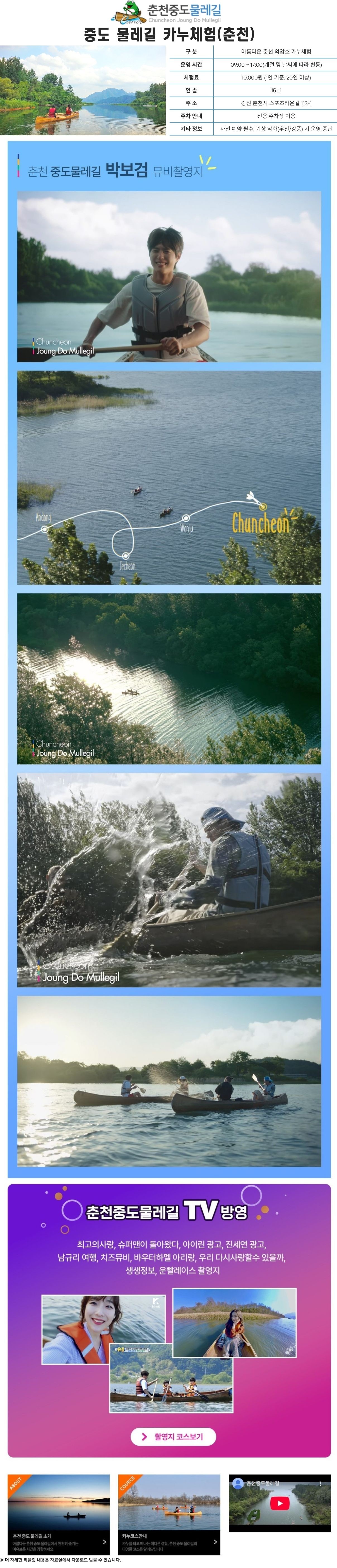 중도 물레길 카누체험(춘천)은 '호반의 도시' 춘천의 아름다운 의암호 물길을 따라 즐기는 대한민국 대표 생태 관광 코스입니다. 학생 단체 및 수학여행객에게 자연 속 협동과 성취의 시간을 선사합니다. 춘천 시내와 인접하여 접근성이 뛰어나며, 다양한 체험학습 일정과 완벽한 조화를 이룹니다. 잔잔한 호수 위에서 친구들과 함께 직접 노를 저으며 마주하는 수려한 풍경은 학생들에게 교실 밖에서만 느낄 수 있는 깊은 힐링과 감동을 제공합니다. 전문 강사의 체계적인 안전 교육으로 누구나 안심하고 참여할 수 있습니다.